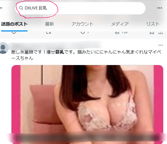 X(旧Twitter)で「DXLIVE+キーワード」を検索。