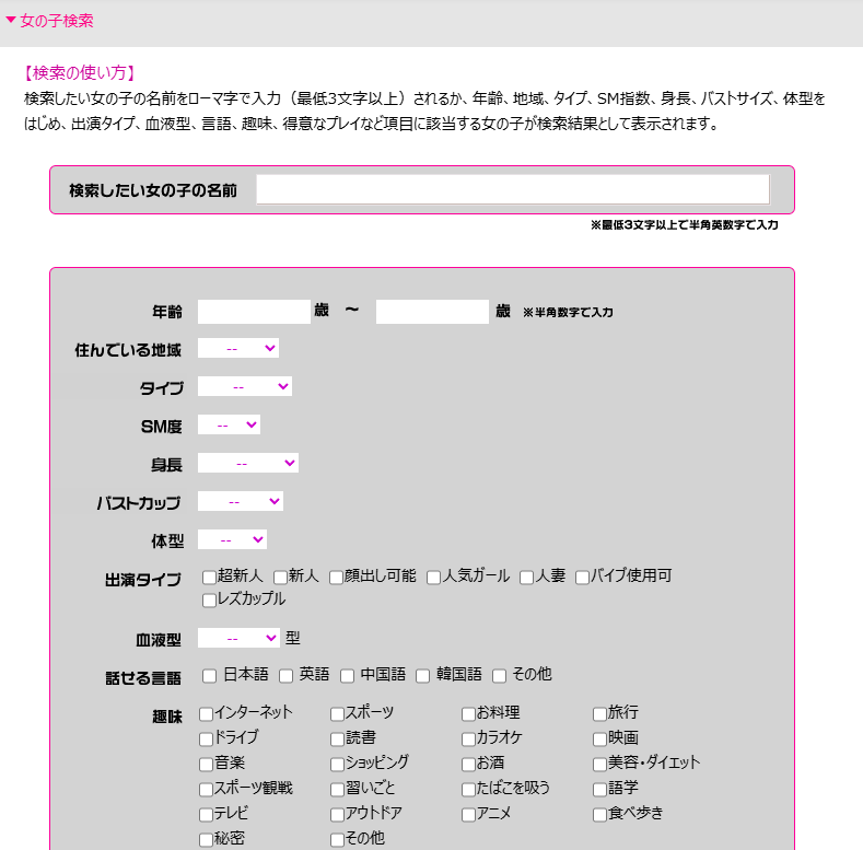 - 顔タイプ(清楚系・ギャル系・大人系)