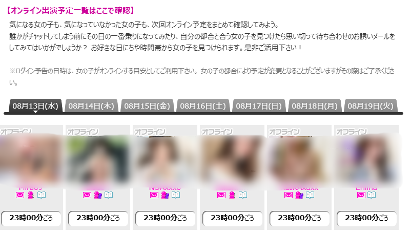 予定表から1週間のスケジュールを確認すれば、あなたの空き時間に合わせて会える娘を選べます。